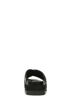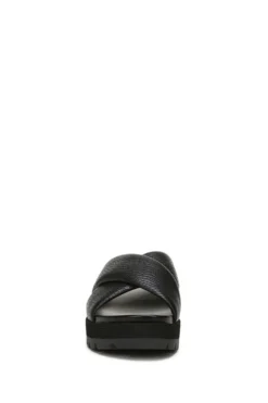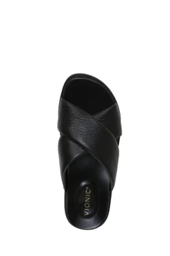Vionic Black Tumbled Leather Vesta Slides