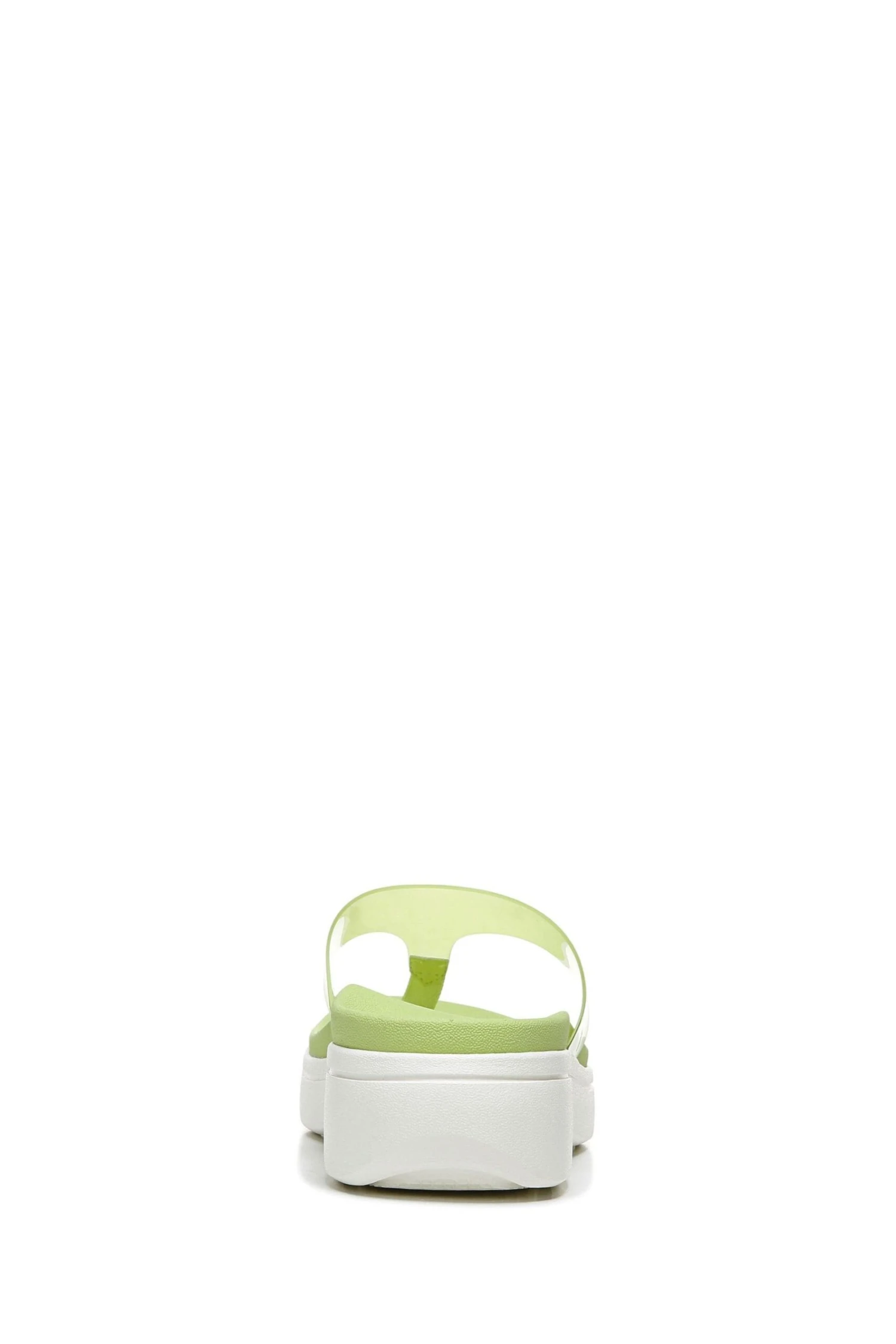 The classic toe post sandal goes next level with walkable wedge height and translucent plastic straps that serve beach chic style.