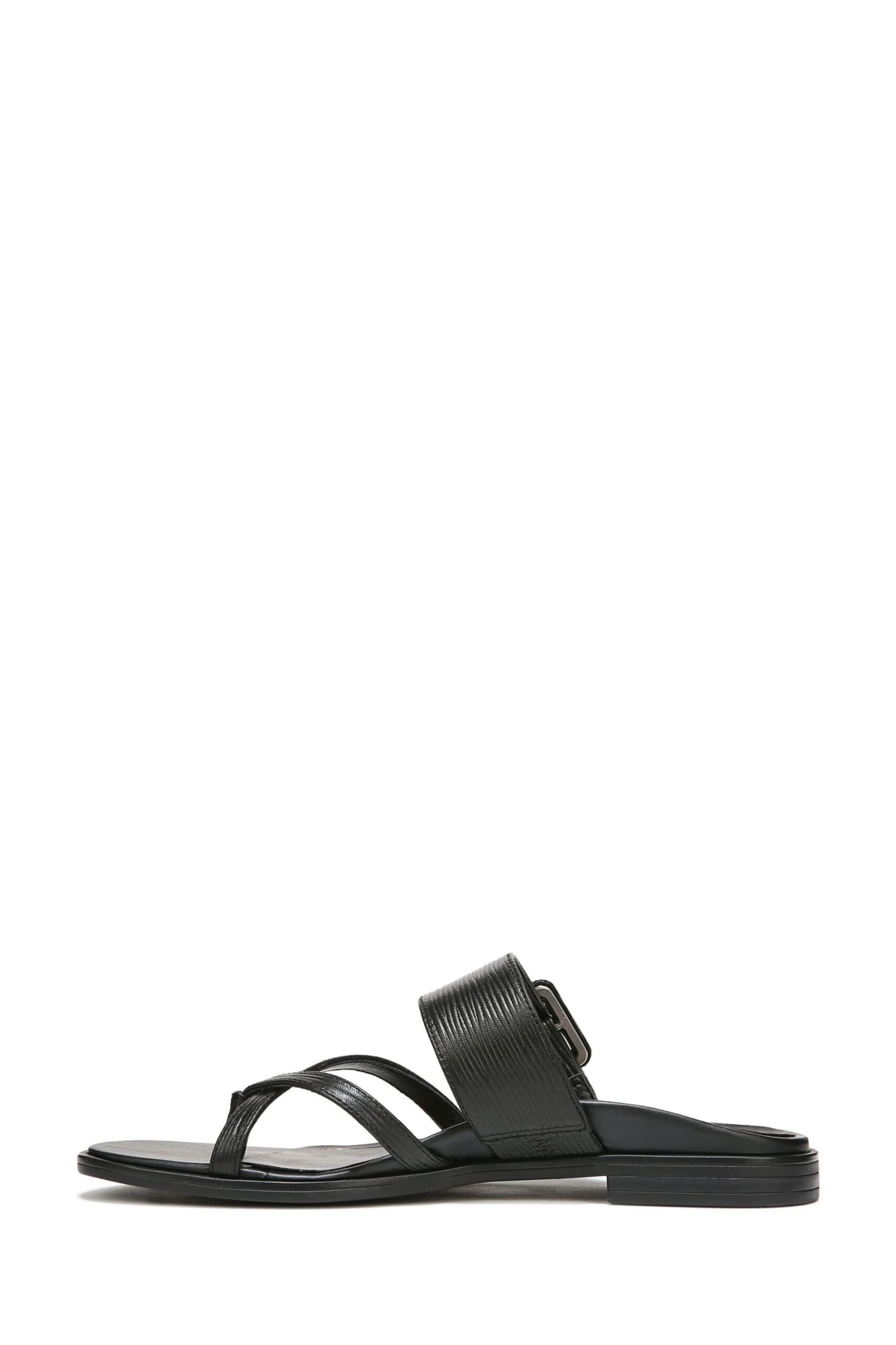 Textured leather combines with a stylish (and adjustable!) chunky buckle and criss-cross toe strap for a polished, luxe look.