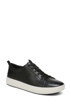 It’s a classic rubber-sole sneaker style dressed up in sleek nubuck or rich leather; metallic accents bring a bit of modern bling.