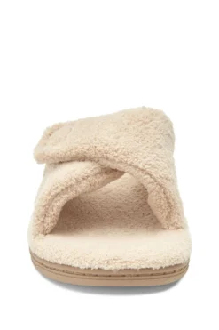 Fun colours, fuzzy comfort, adjustablity, and indoor/outdoor soles make these supportive slippers a day-thru-night dream come true.