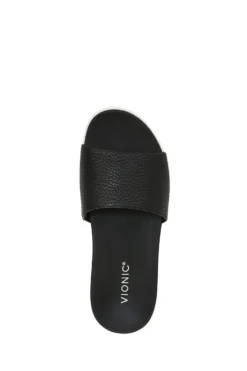 Vionic Val Black Tumbled Leather Slides