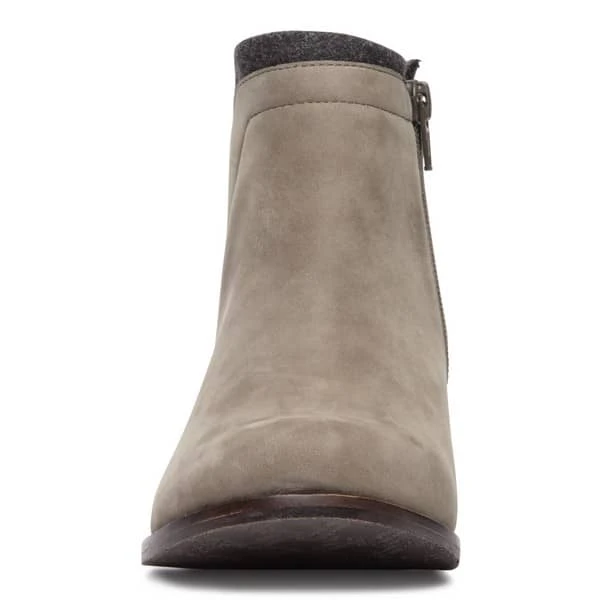 Joslyn is a leather ankle boot with wool accent. A stacked heel affords just the right amount of height.